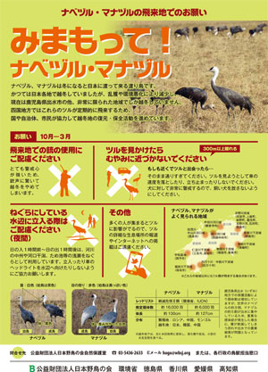 平素からツル類など野鳥の保護につきましては、ご理解とご配慮をいただき深謝しております。