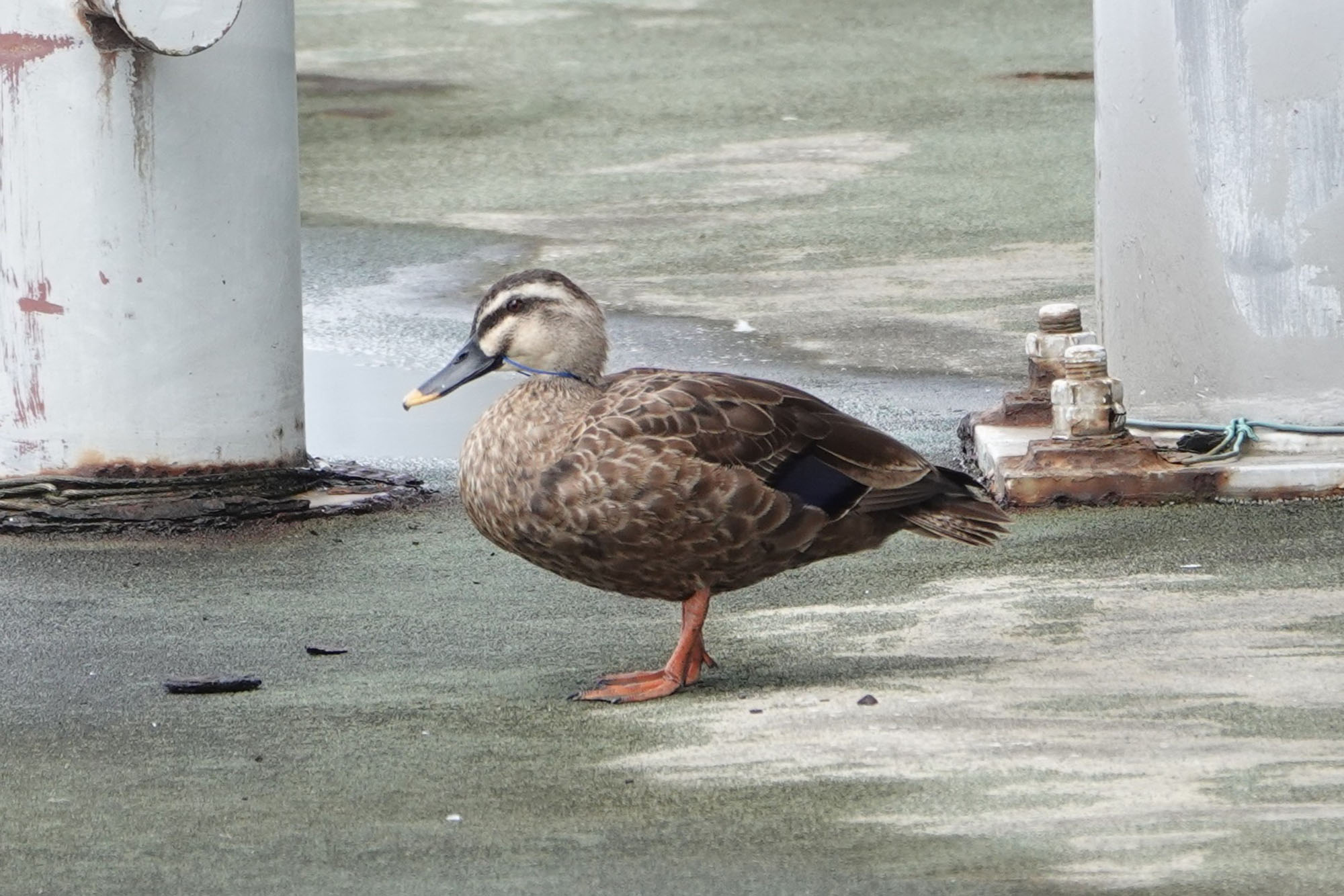 事例71. 頭とくちばしにプラスチック類が挟まったカルガモ
