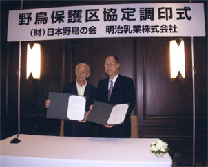 日本野鳥の会と明治乳業(株)が野鳥保護に関する協定を締結