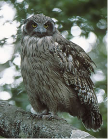 絶滅危惧IA類のシマフクロウ[学名:Ketupa blakistoni]は、北海道および北方領土などに生息しています。近年、森林伐採による営巣木の減少等により著しく個体数を減らしており、国内では北海道東部に約130羽が生息するだけとなっています。