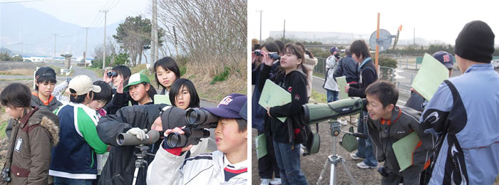 | ■佐賀県支部 愛鳥指導の取り組み■ 昨年9月、長崎で行われた九州・沖縄ブロック大会の席上で、会長が支部ネット通信8月号の記事を取り上げられ、栃木県支部と茨城支部の学校対応への取り組みについて紹介されました。すると、その場で複数の支部から「うちの支部でもやっているから取材に来てもいいよ」というお声をいただきました。 そこで、今回は手を上げていただいた支部のうち、佐賀県支部の学校対応の現場に永松愛子(福岡市油山自然観察の森のチーフレンジャー)がお邪魔してその活動を取材させていただきましたのでご報告させていただきます。 (普及室長/箱田 篤只) |