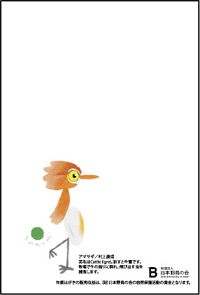 ・お年玉付年賀はがき[郵便事業(株)発行]にイラストと日本野鳥の会シンボルマークを印刷、メッセージ「販売収益は日本野鳥の会の活動資金となります。」と野鳥の解説入り。