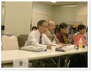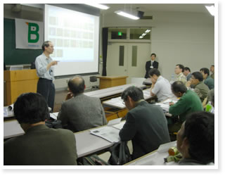 ![]() 写真2.1日目の磯崎理事からの報告 |
