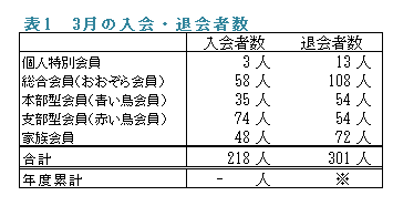 また、3月の退会者数は301人で、前年同月の退者数274人に比べ27人増加となりました。