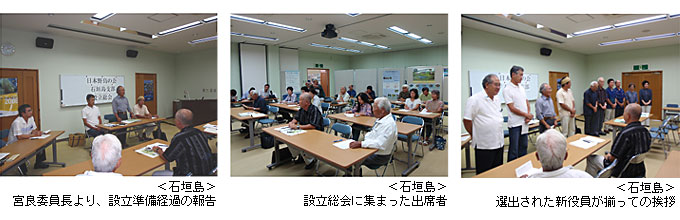 宮良祐成氏を委員長として2008年11月29日に準備委員会が結成され、会員募集や規約案作り、役員候補の検討などの設立準備が進められました。入会希望者は石垣市を中心に46名集まり、2009年5月14日付けで財団会長宛に認定申請が行われました。