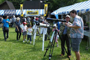 各メーカーの気になる双眼鏡や望遠鏡をネイチャーセンターや芝生広場をフィールドに実際に覗くことができます。