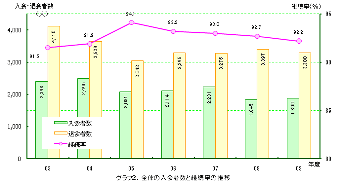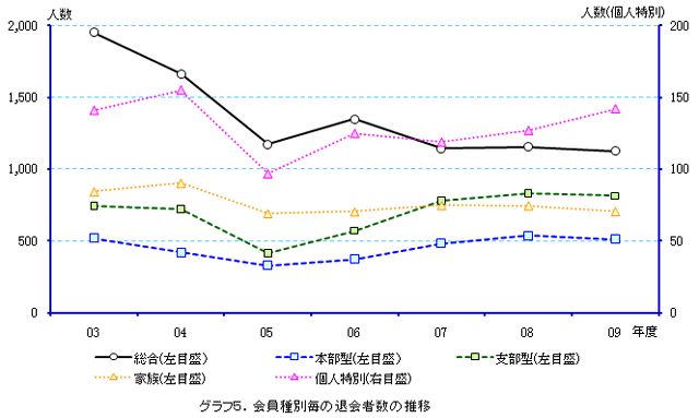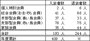 ※会費切れ退会となった後に会費が支払われ会員として復活する方がいらっしゃるため、退会者数の年度累計は、実際の退会者数とずれた数字となります。このため、退会者数合計については年度末の集計後にお知らせいたします。