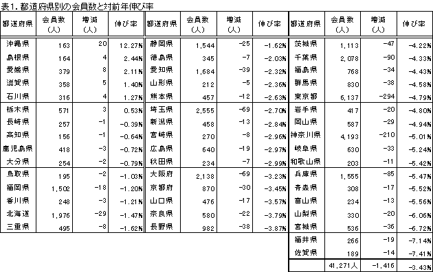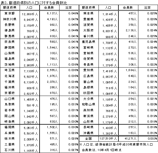 表2.都道府県別の会員数(6月1日時点)