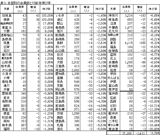 表3.支部別の会員数(6月1日時点)