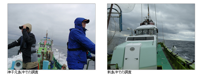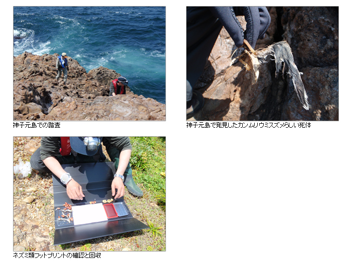 | 【方法】 | 渡船から上陸し、岩の隙間などの巣を目視で探す。夜間は帰巣する成鳥や鳴き声を観察するとともに、天敵となるネズミ類の生息を調べる |