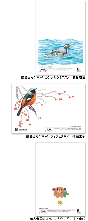 - お年玉付年賀はがき[郵便事業(株)発行]にイラストとカンムリウミスズメロゴマーク、日本野鳥の会シンボルマークに加え、メッセージ「日本野鳥の会は、カンムリウミスズメを守る取り組みをすすめています。」を印刷。