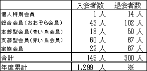 ※会費切れ退会となった後に会費が支払われ会員として復活する方がいらっしゃるため、退会者数の年度累計は、実際の退会者数とずれた数字となります。このため、退会者数合計については年度末の集計後にお知らせいたします。