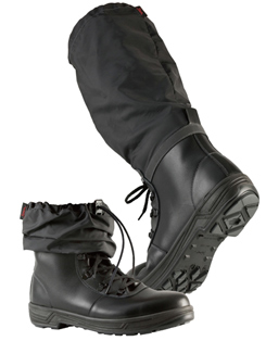 そこで、今回ご紹介するのが、撥水フード付きの靴「活動靴」です。革のブーツ部分は、足首まであるハイカットタイプで、その上に撥水フードが装着されており、普段は折りたたんでおいて、野外で使用する時に伸ばせば、スパッツ付きの靴になります。また、つま先保護のための先芯や、靴底には釘等の踏み抜きを防止する踏抜防止板が内蔵されています。悪条件の道でも、足元の安全を守り、災害時にも役立つ機能でもあります。さらに、アウトソール(靴底のゴム部)は高機能樹脂製ミッドソールと一体化したゴムでできているので、ソールが剥がれる心配がありません。山歩き等でも、安心して使える仕様と言えます。