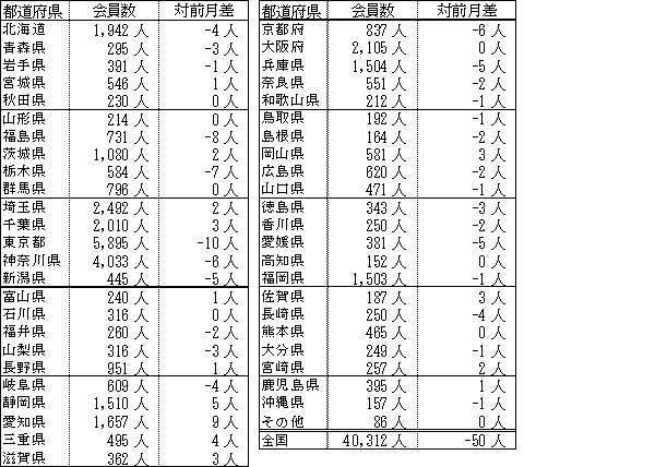 会員数は先月に比べ50人減少しました。