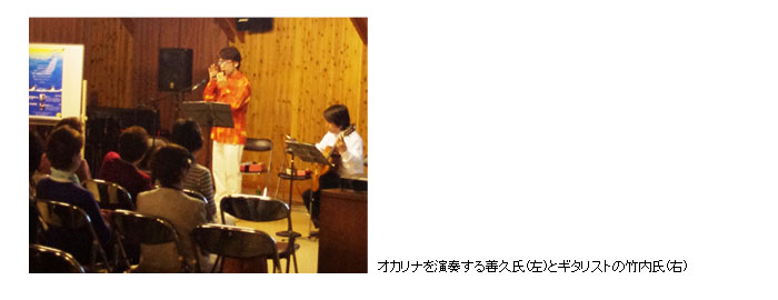 参加者の皆さんからは東日本震災チャリティーに多くの支援金を頂き、また善久さんからご提供いただいたオカリナ販売では、用意したオカリナはすべて売り切れて、この収益につきましてもご寄付をいただきました。
