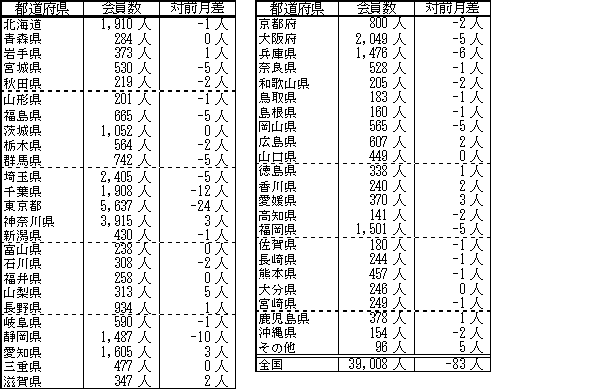 会員数は先月に比べ83人減少しました。