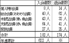 ※会費切れ退会となった後に会費が支払われ会員として復活する方がいらっしゃるため、退会者数の年度累計は、実際の退会者数とずれた数字となります。このため、退会者数合計については年度末の集計後にお知らせいたします。