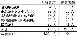 ※会費切れ退会となった後に会費が支払われ会員として復活する方がいらっしゃるため、退会者数の年度累計は、実際の退会者数とずれた数字となります。このため、退会者数合計については年度末の集計後にお知らせいたします。