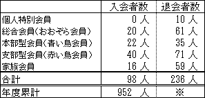 ※会費切れ退会となった後に会費が支払われ会員として復活する方がいらっしゃるため、退会者数の年度累計は、実際の退会者数とずれた数字となります。このため、退会者数合計については年度末の集計後にお知らせいたします。
