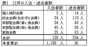 表1. 12月の入会・退会者数