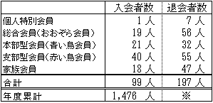※会費切れ退会となった後に会費が支払われ会員として復活する方がいらっしゃるため、退会者数の年度累計は、実際の退会者数とずれた数字となります。このため、退会者数合計については年度末の集計後にお知らせいたします。