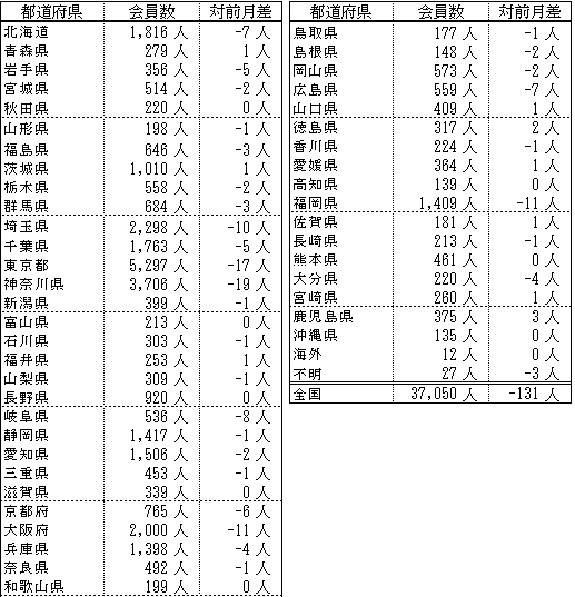 備考:支部別の会員数の合計は、都道府県別の会員数の合計と異なります。