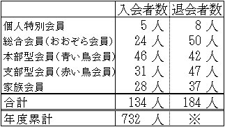 ※会費切れ退会となった後に会費が支払われ会員として復活する方がいらっしゃるため、退会者数の年度累計は、実際の退会者数とずれた数字となります。このため、退会者数合計については年度末の集計後にお知らせいたします。