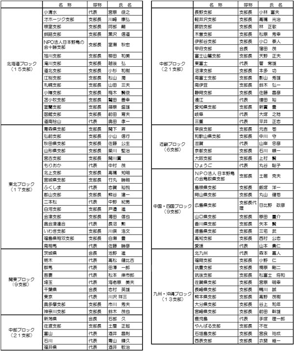 2016年4月1日現在の連携団体(支部等)の代表者は以下のとおりです。(敬称略)