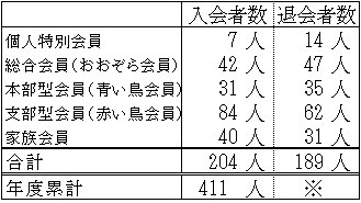 ※会費切れ退会となった後に会費が支払われ会員として復活する方がいらっしゃるため、退会者数の年度累計は、実際の退会者数とずれた数字となります。このため、退会者数合計については年度末の集計後にお知らせいたします。