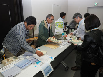 ▲2015年度総会・休憩時間を利用した物販風景